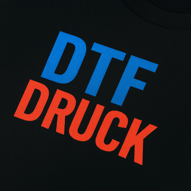 DTF-Druck bringt bunte Motive direkt aufs Shirt – glatt, haltbar und ideal für feine Details.