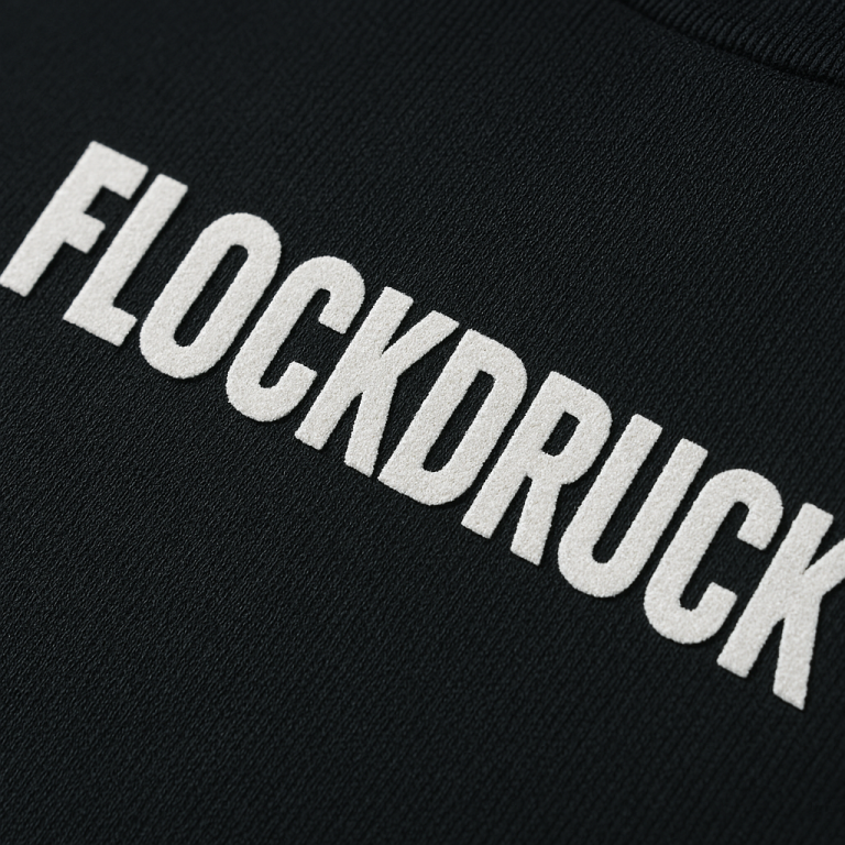 fühlt sich weich und samtig an. Der Druck ist leicht erhaben und wirkt hochwertig. Perfekt für Namen, Logos oder Motive, die auffallen sollen.